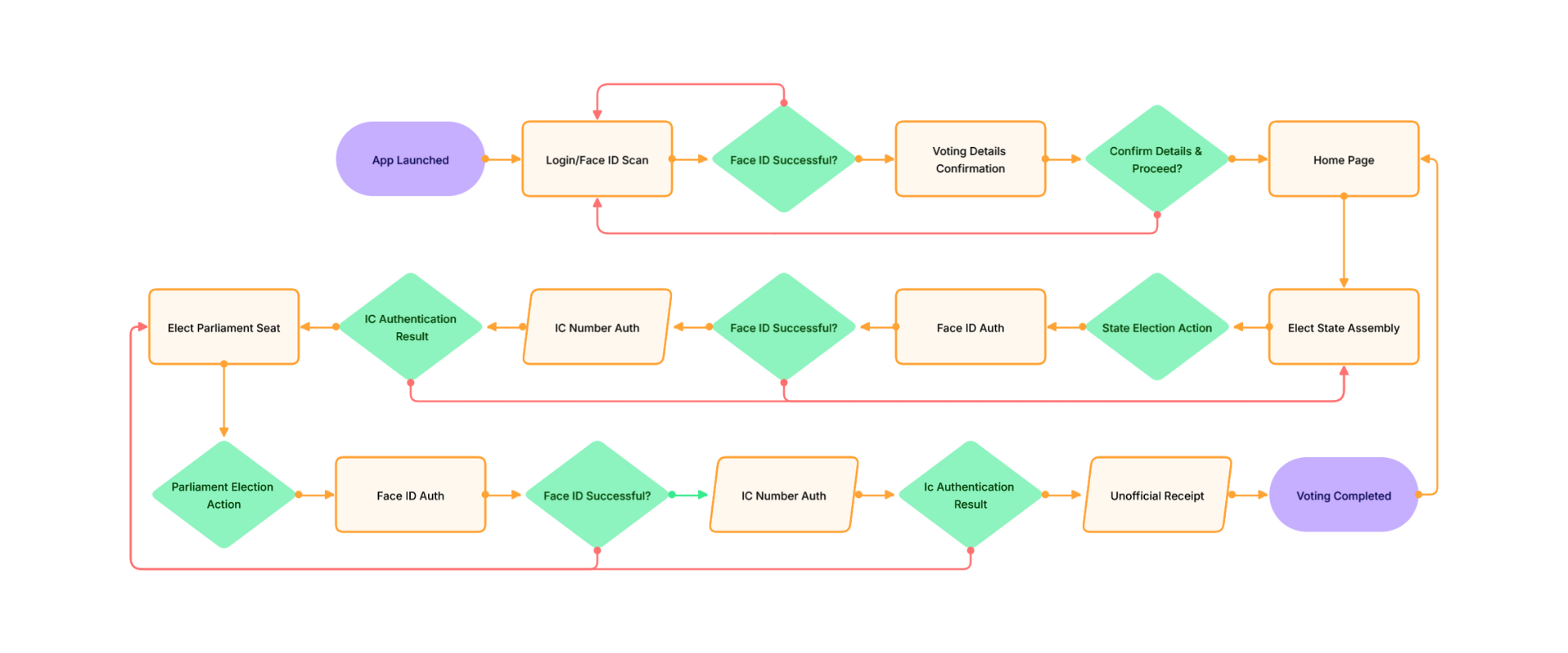 I began by analyzing the current physical voting experience in Malaysia, considering voter needs and pain points to anticipate future digital requirements.